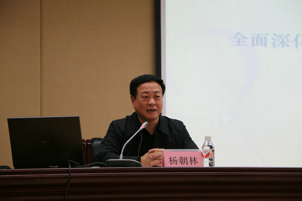 自治區(qū)國(guó)資委楊朝林副巡視員在會(huì)上作專題輔導(dǎo)報(bào)告