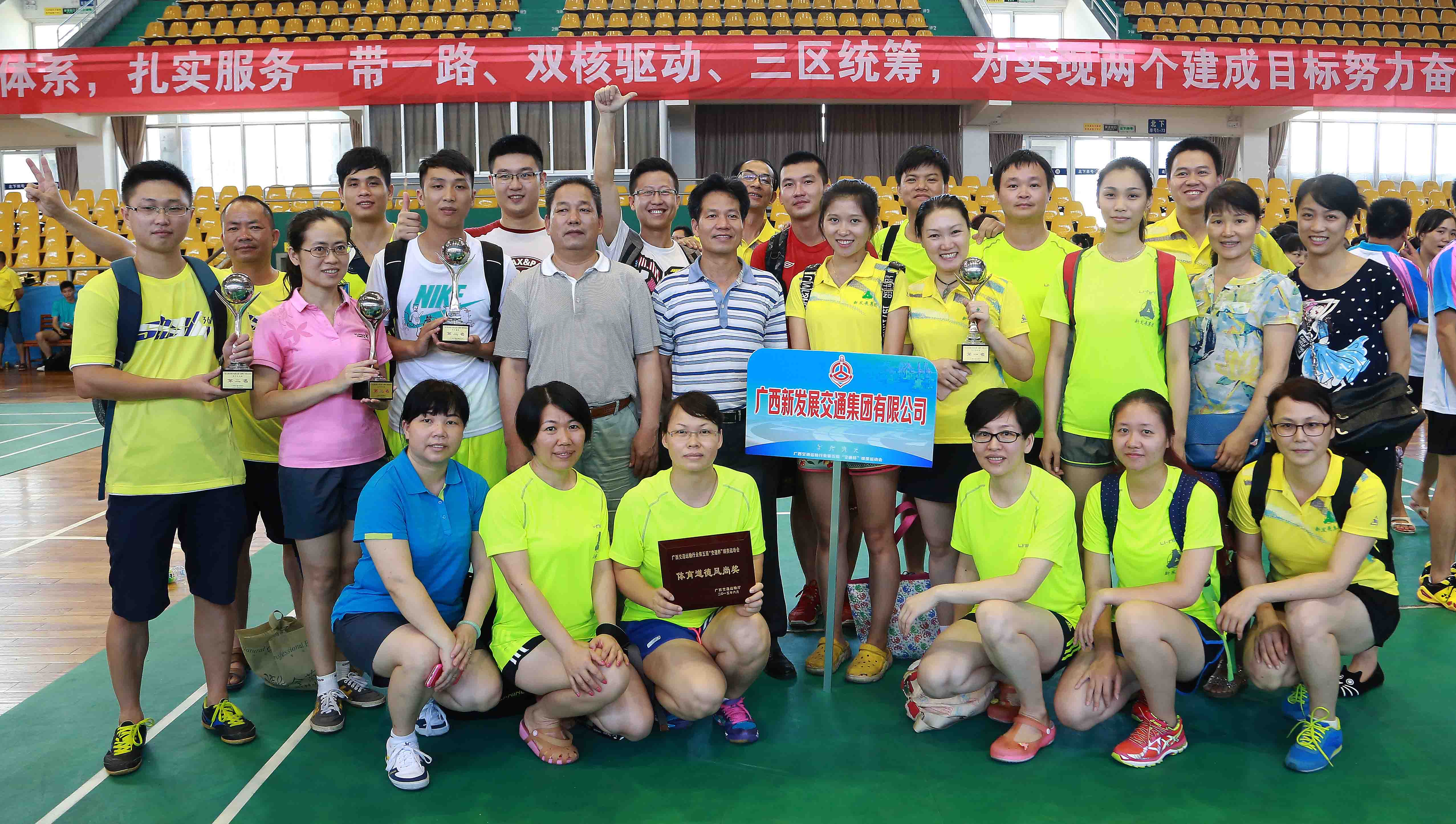 6月26-28日,廣西交通運(yùn)輸行業(yè)第五屆“交通杯”球類(lèi)運(yùn)動(dòng)會(huì)在廣西體育館舉辦,共有27個(gè)單位、企業(yè)參加了本屆運(yùn)動(dòng)會(huì)。我集團(tuán)公司朱堅(jiān)和董事長(zhǎng)、黨委書(shū)記為團(tuán)長(zhǎng),劉明洪、張友坐、鄧遠(yuǎn)志、覃炳賢等領(lǐng)導(dǎo)班子成員為副團(tuán)長(zhǎng),率團(tuán)參加運(yùn)動(dòng)會(huì)。集團(tuán)公司代表團(tuán)(70余名運(yùn)動(dòng)員)在連續(xù)3天的運(yùn)動(dòng)會(huì)日程里,參與了男子籃球、氣排球(男子組、女子組)、乒乓球(男子團(tuán)體、女子團(tuán)體)、羽毛球(男子團(tuán)體、女子團(tuán)體)等比賽項(xiàng)目競(jìng)技,并獲得優(yōu)異成績(jī)。