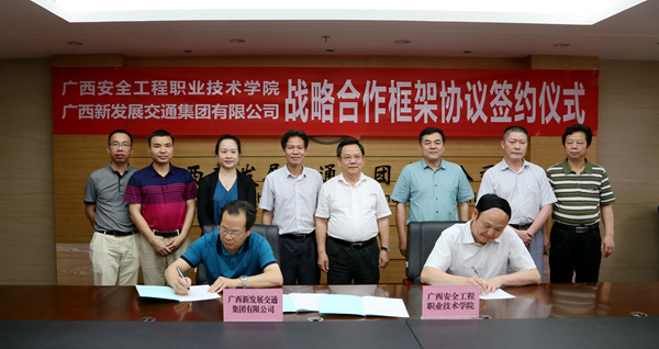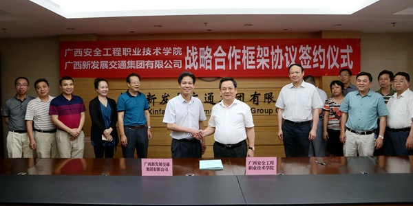 黎志逘祝賀雙方正式建立戰(zhàn)略合作伙伴關(guān)系。他說(shuō),廣西安全工程職業(yè)技術(shù)學(xué)院是經(jīng)廣西壯族自治區(qū)人民政府批準(zhǔn)成立、教育部備案的公辦全日制普通高等職業(yè)學(xué)院,隸屬?gòu)V西壯族自治區(qū)安全生產(chǎn)監(jiān)督管理局管理,是廣西唯一一所、全國(guó)第三所專門(mén)培養(yǎng)安全類(lèi)高等專業(yè)技術(shù)人才的現(xiàn)代化職業(yè)學(xué)院。為了深入貫徹黨的十八屆六中全會(huì)和習(xí)近平總書(shū)記、李克強(qiáng)總理關(guān)于安全生產(chǎn)工作的重要指示批示精神,推動(dòng)企業(yè)落實(shí)安全生產(chǎn)主體責(zé)任,在全社會(huì)凝聚弘揚(yáng)安全發(fā)展理念、支持安全生產(chǎn)的共識(shí),“十三五”期間乃至更長(zhǎng)一個(gè)時(shí)期,雙方將建立互信、互補(bǔ)、互援的戰(zhàn)略合作關(guān)系,開(kāi)啟校企全面深入合作的新篇章。通過(guò)深入合作交流,促進(jìn)了廣西安全工程職業(yè)技術(shù)學(xué)院發(fā)展,提升了廣西新發(fā)展交通集團(tuán)有限公司在安全生產(chǎn)方面的實(shí)力,最終實(shí)現(xiàn)雙方的共贏。