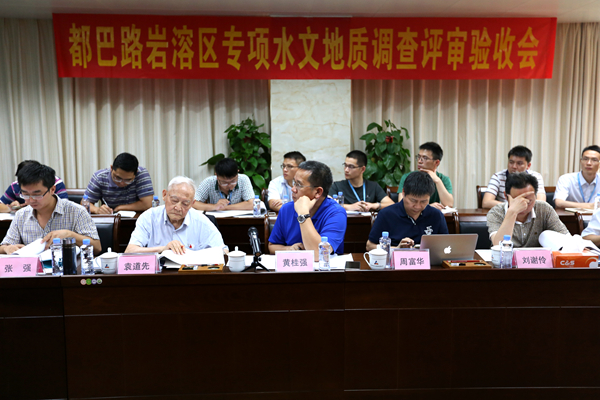 袁道先院士(左二)參加都巴路初步設計巖溶區(qū)專項水文地質(zhì)調(diào)查評審驗收研討
