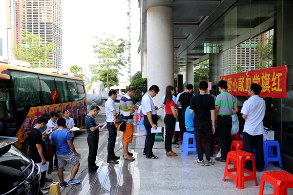 集團(tuán)公司總部及下屬的交通設(shè)計(jì)院、路橋集團(tuán)、廣路集團(tuán)、路建集團(tuán)等15家單位的黨員群眾積極響應(yīng)公司黨委的號(hào)召,踴躍參與無(wú)償獻(xiàn)血活動(dòng)。上午8:30,南寧市中心血站派出的采血車剛剛駛?cè)虢煌ㄔO(shè)計(jì)大廈,早早守候在大院的黨員群眾自覺在登記處排好了隊(duì),依次排隊(duì)獻(xiàn)血。獻(xiàn)血活動(dòng)持續(xù)到下午18:00結(jié)束,共有175人參與無(wú)償獻(xiàn)血,捐獻(xiàn)熱血55900毫升。