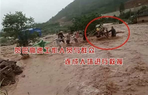 項(xiàng)目員工手拉手救出30名被洪水圍困群眾