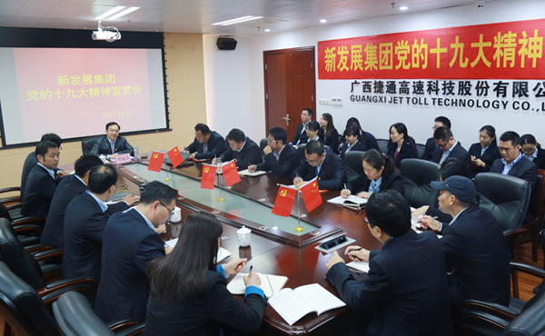 11月28日上午,集團(tuán)公司總會(huì)計(jì)師鄧遠(yuǎn)志來到捷通公司宣講黨的十九大精神,并開展工作調(diào)研。捷通公司黨總支班子及總部人員和南寧市自營(yíng)網(wǎng)點(diǎn)負(fù)責(zé)人近70人參加了學(xué)習(xí)。