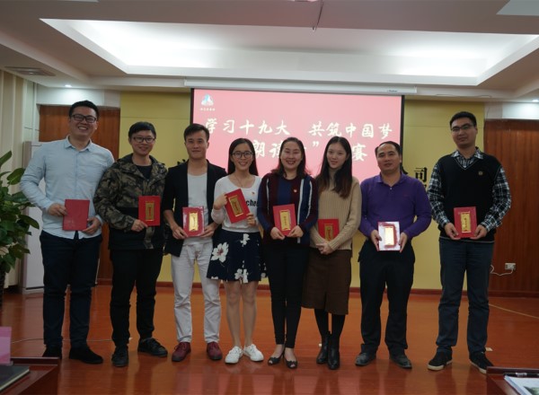 比賽產(chǎn)生一等獎一名,二等獎兩名,三等獎五名,公司副總經(jīng)理、指揮部指揮長、黨支部書記陸原恩為獲獎?wù)哳C發(fā)了榮譽證書和黨的十九大相關(guān)學(xué)習(xí)書籍。