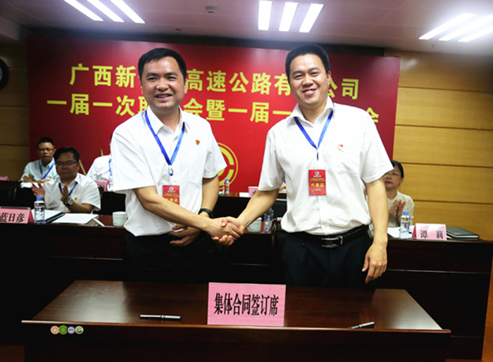會(huì)上,公司黨委書記、董事長(zhǎng)賴水平向大會(huì)作了題為《不忘初心,牢記使命,勇于擔(dān)當(dāng),敢挑重?fù)?dān),奮力開創(chuàng)新時(shí)代“縣縣通”高速公路建設(shè)事業(yè)新局面》的工作報(bào)告。報(bào)告從六個(gè)方面全面回顧了公司成立三年來的工作亮點(diǎn):一是制定了《廣西新恒通高速公路有限公司“十三五”發(fā)展戰(zhàn)略和規(guī)劃綱要》,明確了發(fā)展定位和發(fā)展目標(biāo) ;二是基本建立現(xiàn)代法人治理結(jié)構(gòu)體系;三是組織機(jī)構(gòu)不斷健全,基礎(chǔ)管理制度不斷完善,職工隊(duì)伍不斷壯大,管理水平和管理能力不斷提高;四是“區(qū)市共建”模式和EPC模式的推行取得了突破性進(jìn)展;五是公司承接的高速公路建設(shè)進(jìn)入了快車道;六是黨建工作開創(chuàng)了新局面,黨風(fēng)廉政建設(shè)扎實(shí)推進(jìn)。報(bào)告指出,2017年在集團(tuán)公司的正確領(lǐng)導(dǎo)和大力支持下,公司超額完成年度投資目標(biāo)任務(wù),公司各項(xiàng)管理工作不斷取得新進(jìn)展和新成效,在集團(tuán)公司2017年度工作檢查考核評(píng)比中取得第五名的好成績(jī),公司工會(huì)工作在2017年全區(qū)工會(huì)工作目標(biāo)考核評(píng)比中榮獲三等獎(jiǎng)。2018年是貫徹落實(shí)黨的十九大精神的開局之年,是改革開放40周年,是建設(shè)“交通強(qiáng)國(guó)”新征程的起步之年,展望 2018年全國(guó)高速公路發(fā)展形勢(shì),報(bào)告提出了2018年年度投資目標(biāo)任務(wù):完成高速公路投資73.1億元,任務(wù)艱巨,責(zé)任重大,使命光榮,要緊緊圍繞這個(gè)中心任務(wù),從八個(gè)方面狠抓落實(shí):一是進(jìn)一步加強(qiáng)和完善企業(yè)法人治理結(jié)構(gòu),堅(jiān)持依法治企;二是進(jìn)一步推行EPC模式和“區(qū)市共建模式”;三是進(jìn)一步加快推進(jìn)項(xiàng)目前期工作;四是進(jìn)一步解決建設(shè)資金保障問題;五是進(jìn)一步推進(jìn)“品質(zhì)工程、綠色公路”創(chuàng)建活動(dòng);六是進(jìn)一步抓好安全生產(chǎn)管理;七是積極謀劃項(xiàng)目建成后的運(yùn)營(yíng)管理和沿線土地、旅游等資源的開發(fā);八是以黨的十九大精神為引領(lǐng),進(jìn)一步加強(qiáng)黨的建設(shè)和黨風(fēng)廉政建設(shè)。