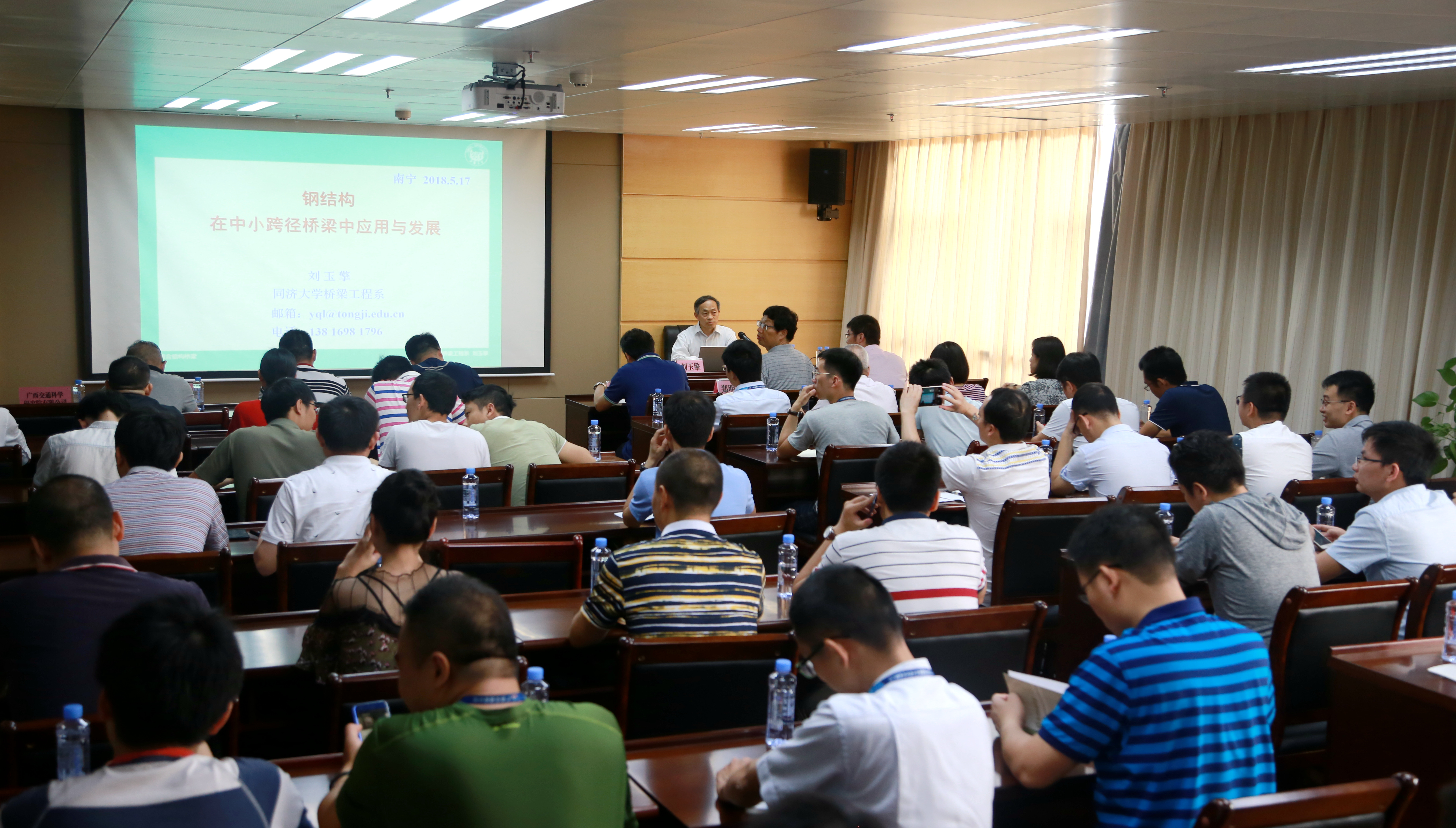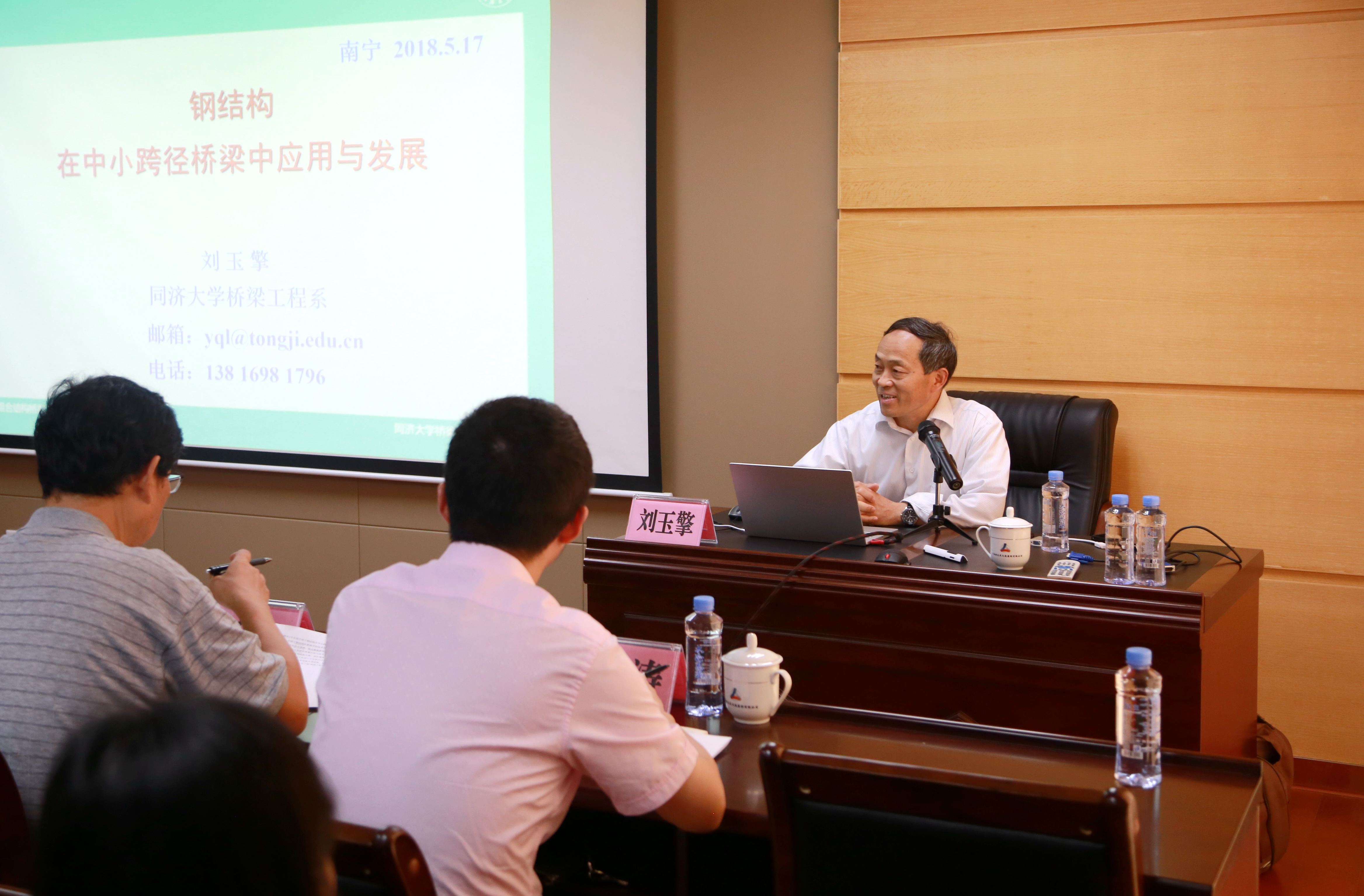 5月17日上午,集團公司博士后科研工作站邀請合作流動站同濟大學橋梁工程系教授、博士生導師劉玉擎到集團公司授課,講解鋼結(jié)構(gòu)在中小跨徑橋梁中的應用及發(fā)展歷程。集團公司總工程師覃炳賢、首席專家鄭明德及直屬企業(yè)技術骨干共72人參加了講座。