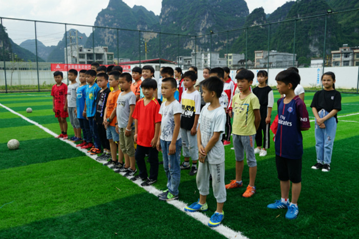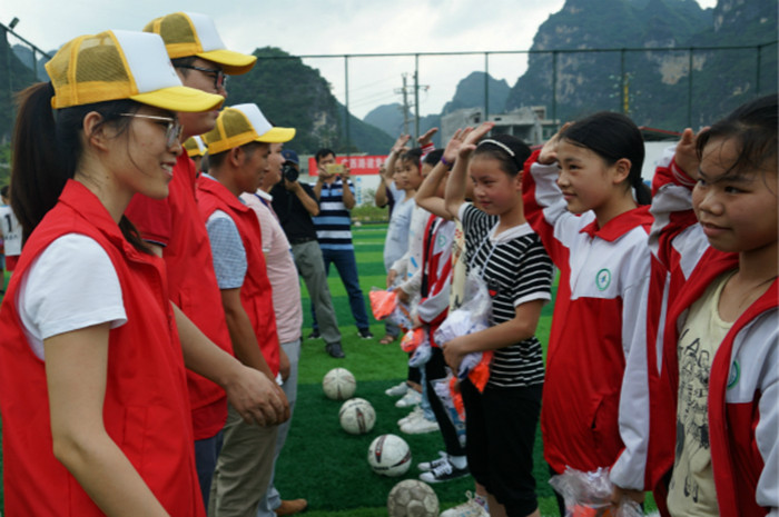 六也鄉(xiāng)中心小學(xué)韋校長對(duì)青年志愿者們的幫助表示衷心的感謝,他表示:志愿者們的愛心不僅解決了孩子們的運(yùn)動(dòng)場所問題,更是在孩子們的心中種下了希望的種子,圓了孩子們的足球夢(mèng)。六年級(jí)的小浩作為球隊(duì)隊(duì)長為都巴高速志愿者代表送上錦旗,并表示一定不會(huì)辜負(fù)大家的愛心與期望,勤奮鍛煉、努力向上,做一個(gè)對(duì)社會(huì)有用的人。
