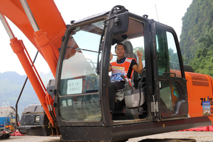 圖7:參賽選手用挖掘機(jī)修整邊坡